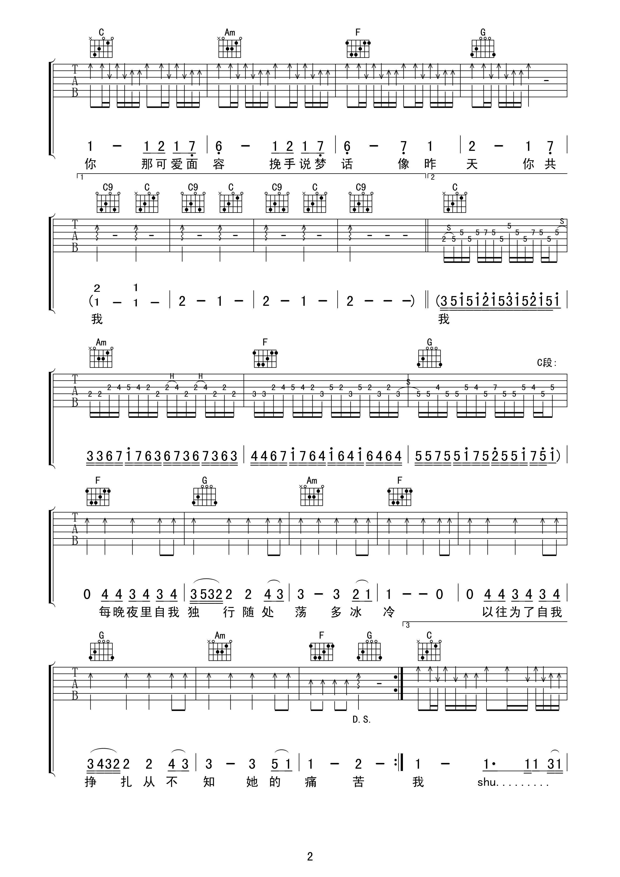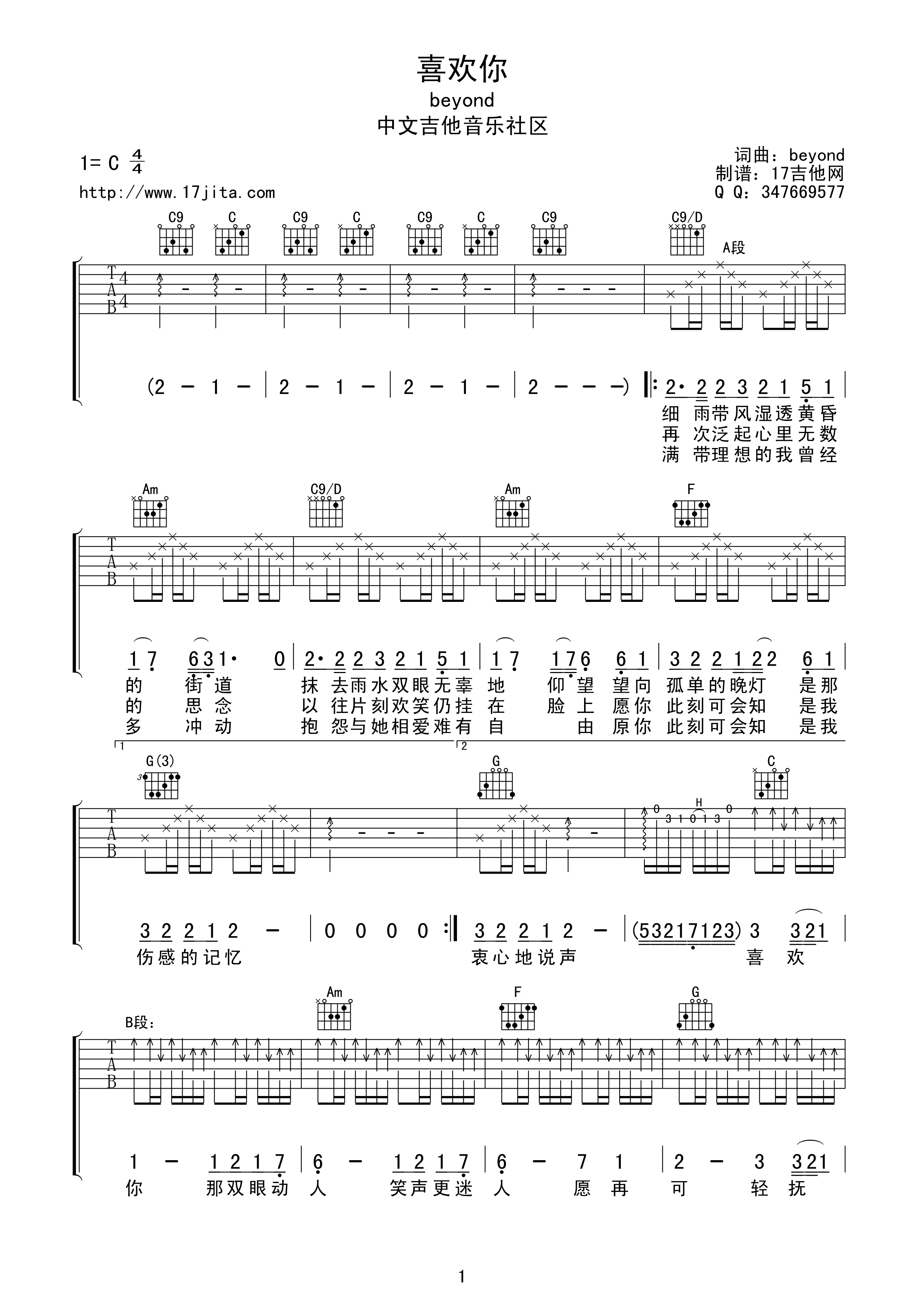 喜欢你吉他谱