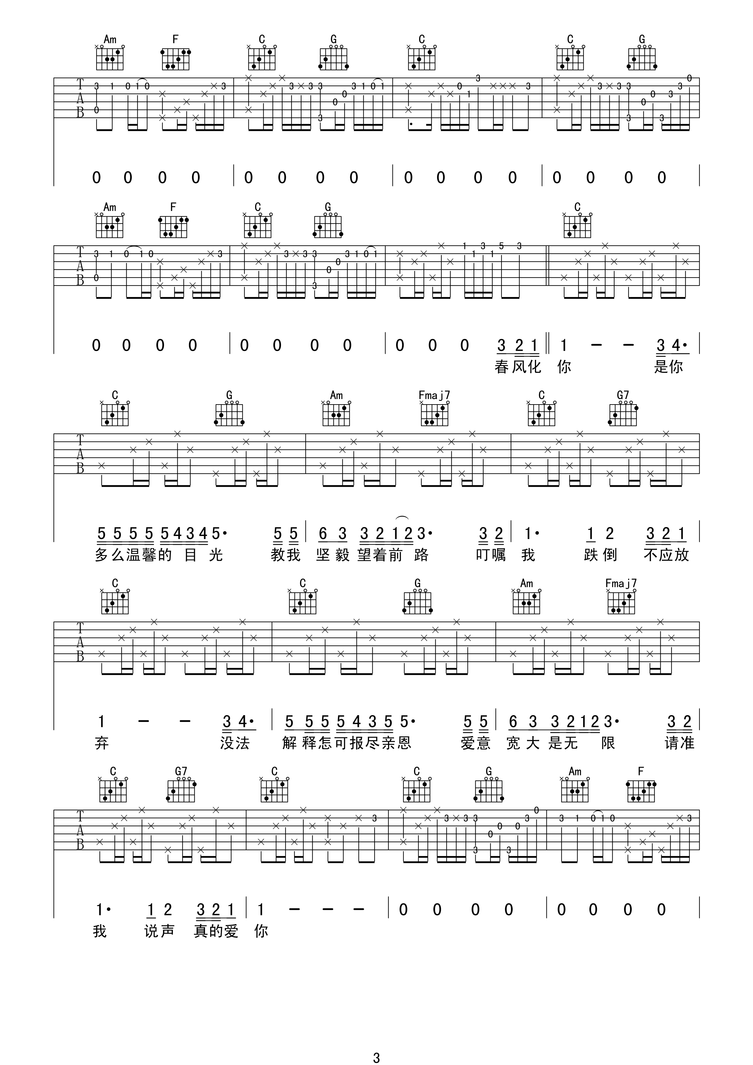 真的爱你吉他谱